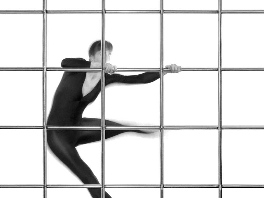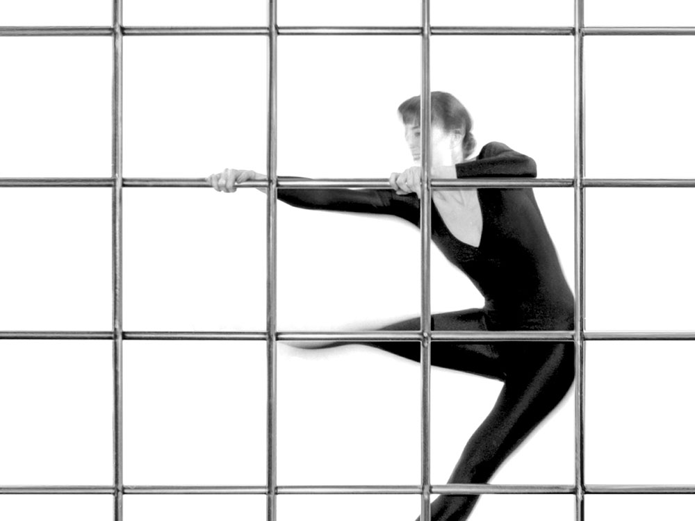 Entschlossen beginnt sie ihr strenges Fitnessprogramm: Sie startet behutsam mit Lockern und Dehnen, wärmt sich auf, und Atemübungen begleiten die ersten leichten Bewegungen, bevor sie sich größeren Herausforderungen stellt.