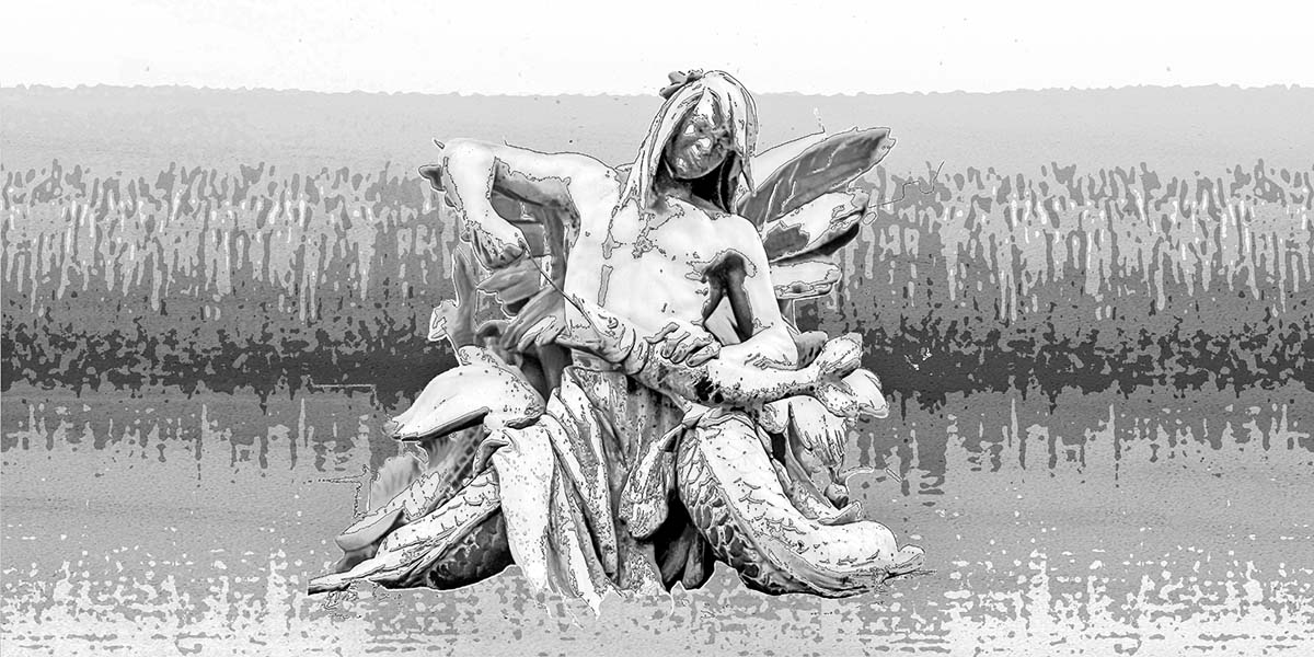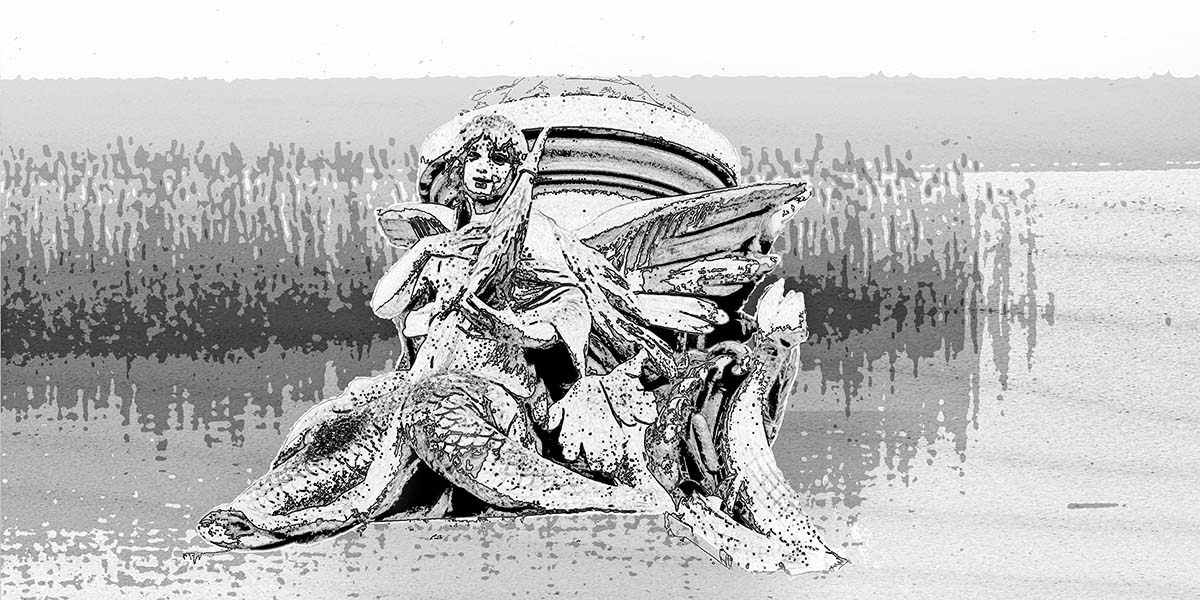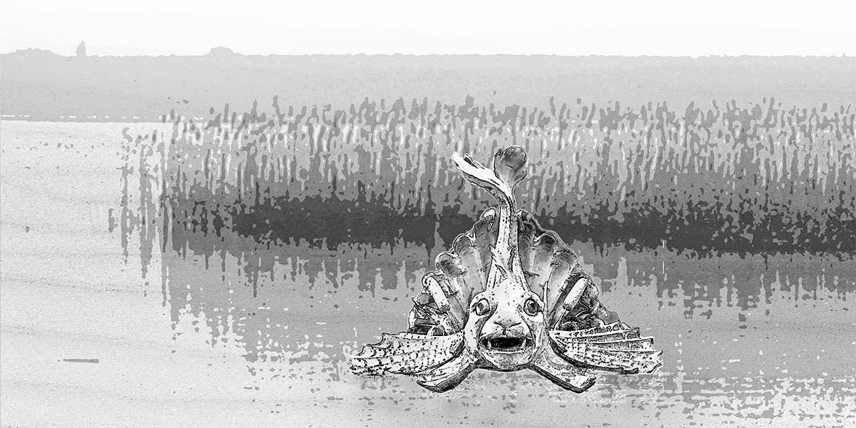 Dopmeyers Skulpturen – sind eigentlich auf einer Brücke zu sehen. Auch ohne die üppig verspielten Kandelaber machen die Skulpturen Lust auf die Märchen der Gebrüder Grimm. Ich habe an des „Fischers Frau“ denken müssen und habe die Ansichten an ein Ufer platziert.